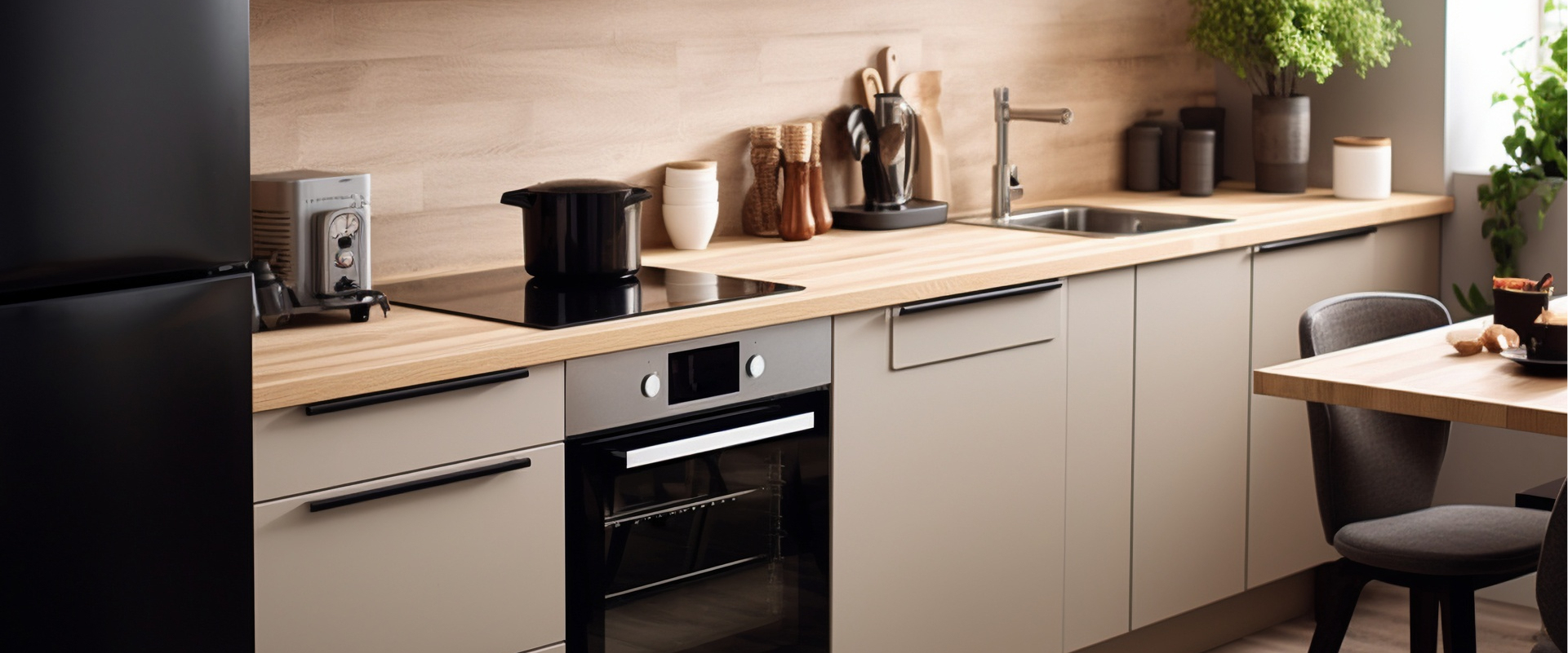 Vesta kitchens are crafted from moisture-resistant, impact-resistant materials sourced both locally and from Europe. Choose from a range of earthy tones, natural wood textures, or clean modern surfaces — all easy to clean and built for high usage.